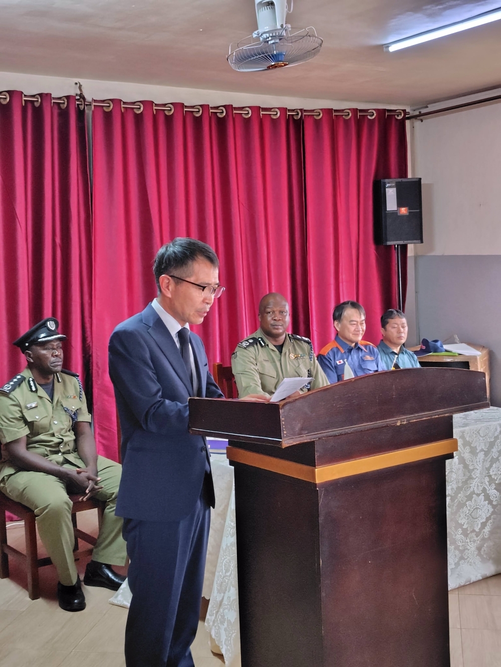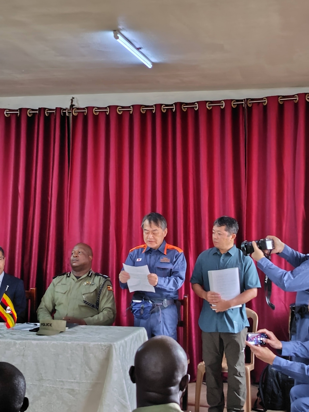 12月10日、吉田参事官はカンパラ市のウガンダ消防局にて、日本消防協会が実施する技術指導の開始式に出席しました。当日はウガンダ警察から人材開発局長が出席し、日本の救急・防災分野における協力に対する感謝の意が述べられました。