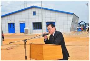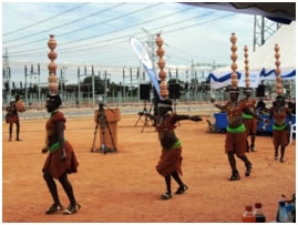 2012年5月3日、ウガンダの首都カンパラ近郊カワンダにて、皆川一夫大使は我が方円借款案件「ブジャガリ送電線網整備計画」の引渡式に出席し、ウガンダ共和国セカンディ副大統領、ムロニ・エネルギー大臣、アフリカ開発銀行カエンバ当地代表、JICAウガンダ事務所星次長らとともにその完成を祝福しました。